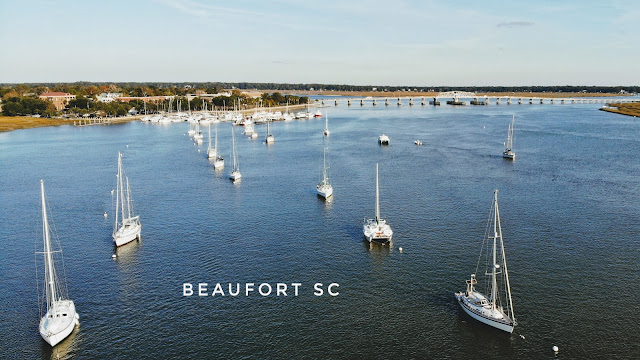 We stayed in Beaufort through Thanksgiving - our first holiday aboard Borealis! It was a warm, sunny day, and earlier in the week we found a 4-pound turkey breast at the market that was just the right size to fit in our compact oven. We made all the traditional side dishes on our two-burner stove and had a really enjoyable day aboard.